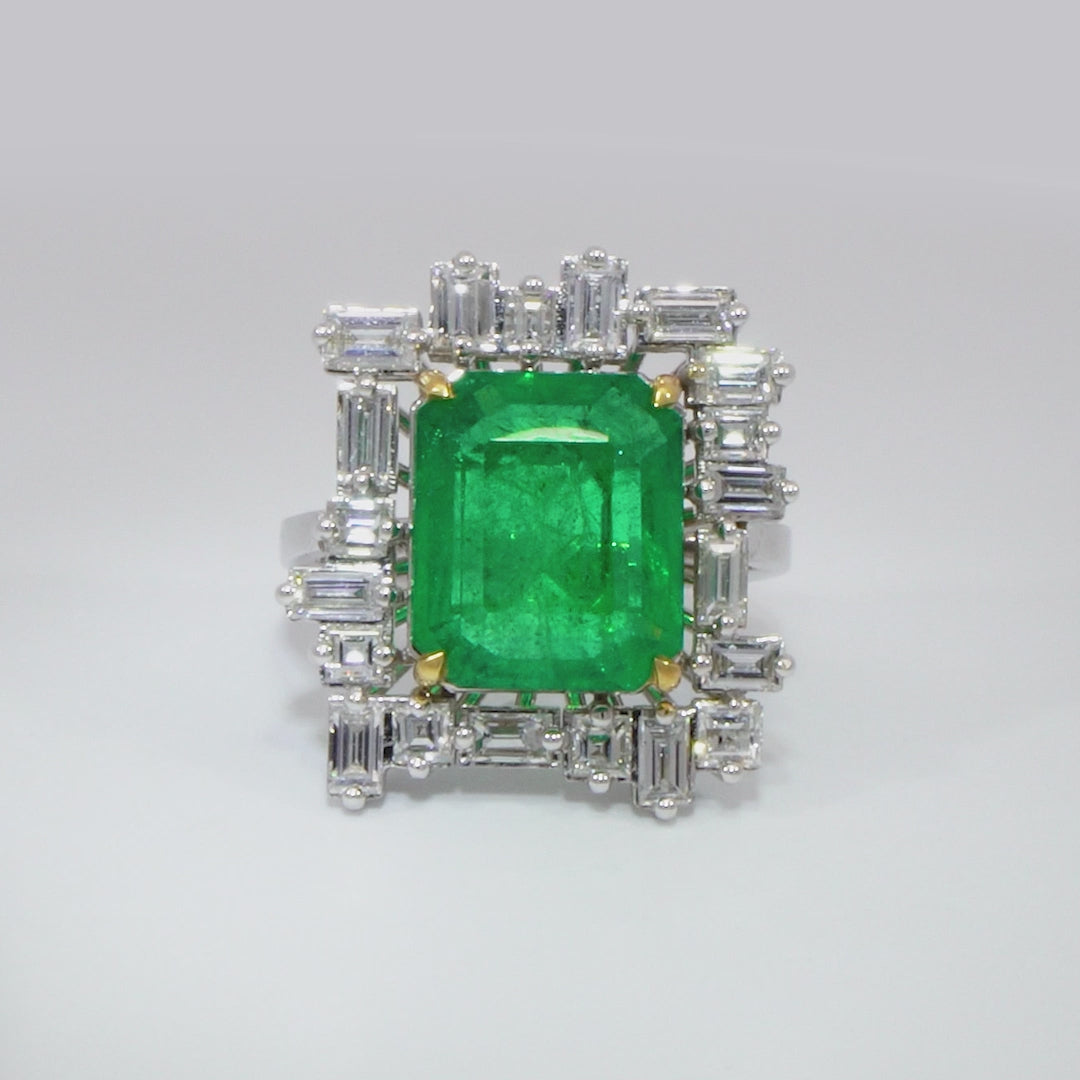 خاتم الزمرد الأخضر خاتم مدبب من الألماس الجانبي