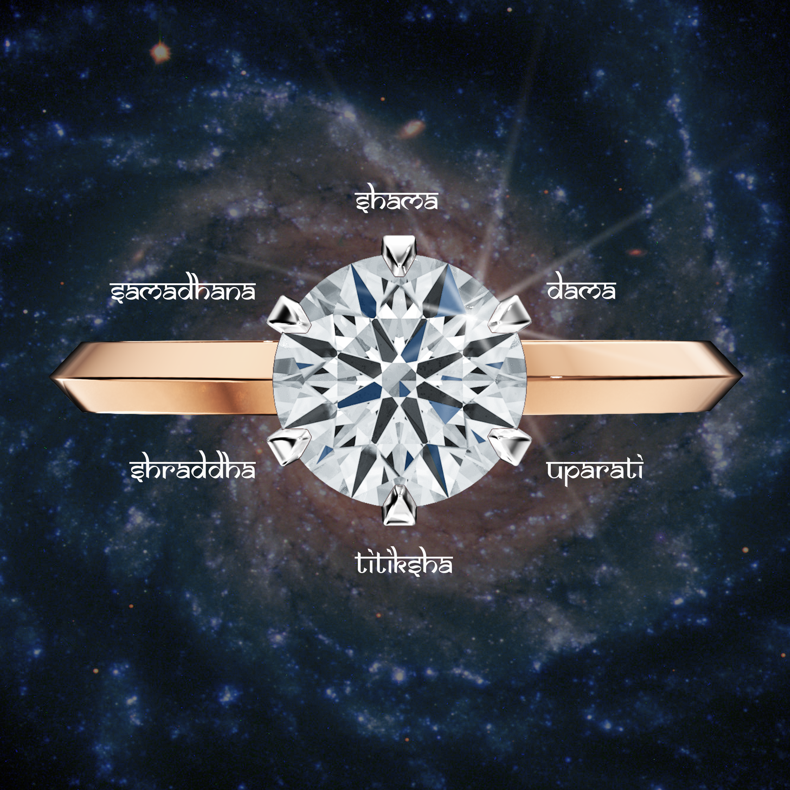 With each glance at the radiant diamond, held in perfect balance by the six prongs, the wearer is reminded of the six virtues(Shad Sampat) essential for spiritual evolution: